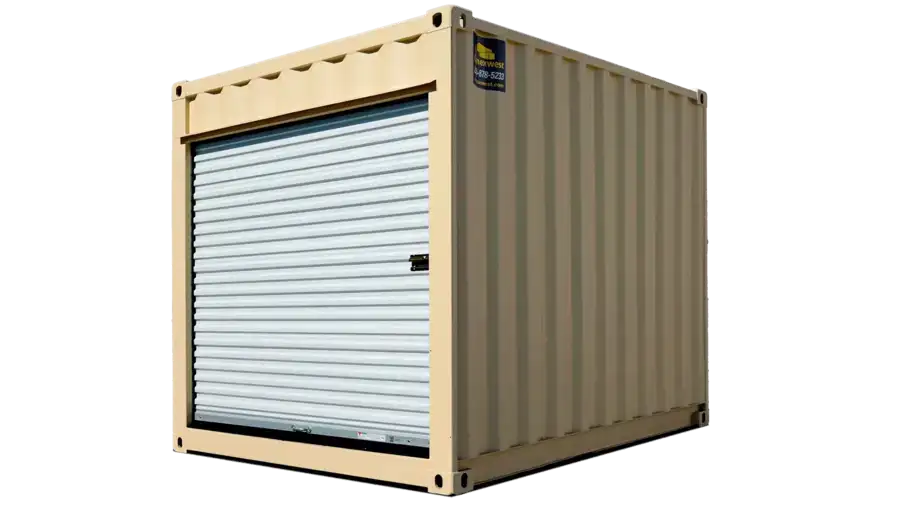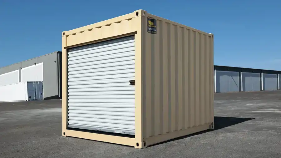 The 10ft new container with roll-up door is a compact, one-trip storage unit designed for accessibility and space efficiency. Ideal for commercial, industrial, and residential use, this unit features a wide roll-up door that maximizes usable space and allows for fast, unobstructed access to contents.