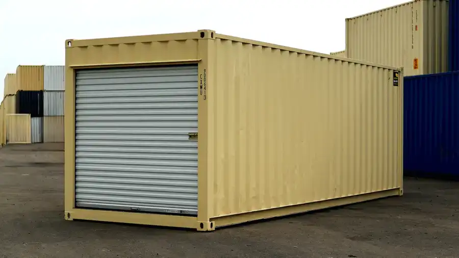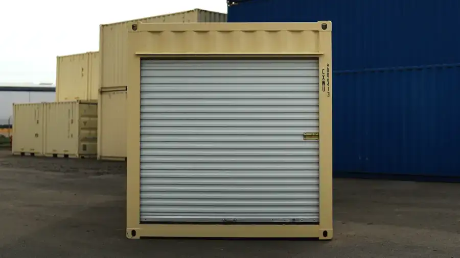 The easy-access roll-up door saves space while providing secure, quick entry. Each container is professionally cleaned, primed, and painted with RAL 1015 beige DTM (Direct-to-Metal) industrial-grade paint, offering a sleek look and added rust protection.