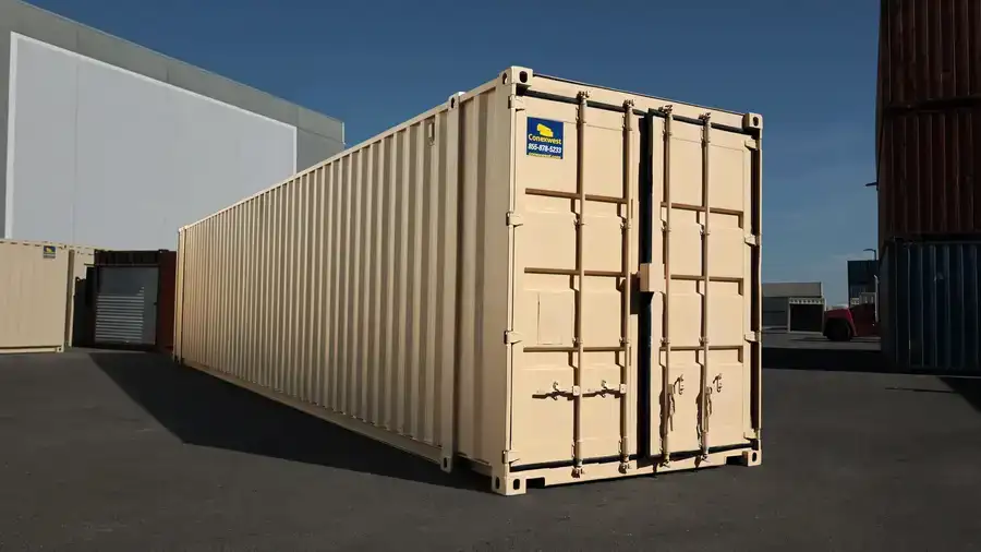 Our 45ft high cube refurbished shipping containers offer a durable, upgraded storage solution with even more space than a standard 40ft container.