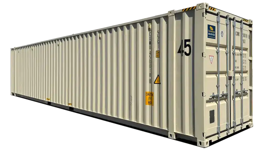 Our 45ft high cube shipping containers offer an expanded storage solution with even more capacity than a standard 40ft container.
